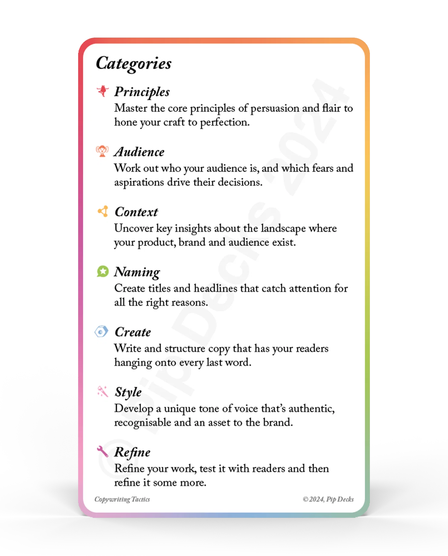 Copywriting Tactics: 50+ proven copywriting frameworks to help you write ads that lead to sales, emails that actually get read, and landing pages that turn visitors into buyers (the exact tactics that took Pip Decks to $20m in annual sales.)